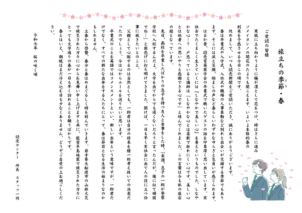 季節のエッセー 当店では季節に合わせたチラシを作成し、新聞折込にてお届けしております。 不定期ではありますが、皆様にその時その時をふと感じていただけたら幸いです。 2025年9月 折込 2025年6月 折込 2025年5月 折込 2025年3月 折込 2024年12月 折込 2024年9月 折込 2024年6月 折込 2024年5月 折込 2024年4月 折込 2023年12月 折込 2023年9月 折込 2023年6月 折込 2023年5月 折込 2023年4月 折込 2022年12月 折込 2022年9月 折込 2022年6月 折込 2022年5月 折込 2021年12月 折込 2021年9月 折込 2021年6月 折込 2021年5月 折込 2021年4月 折込