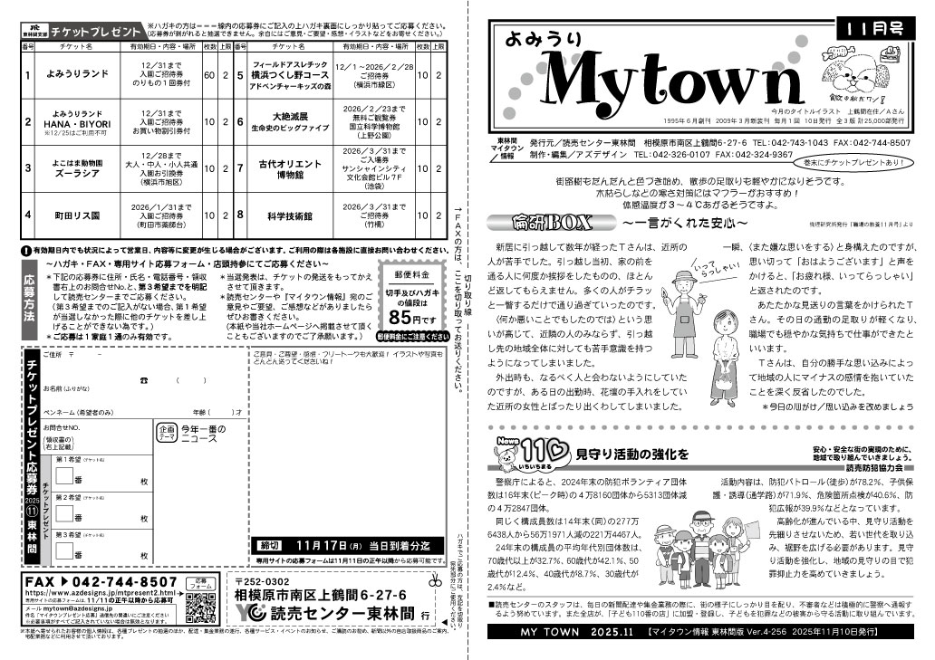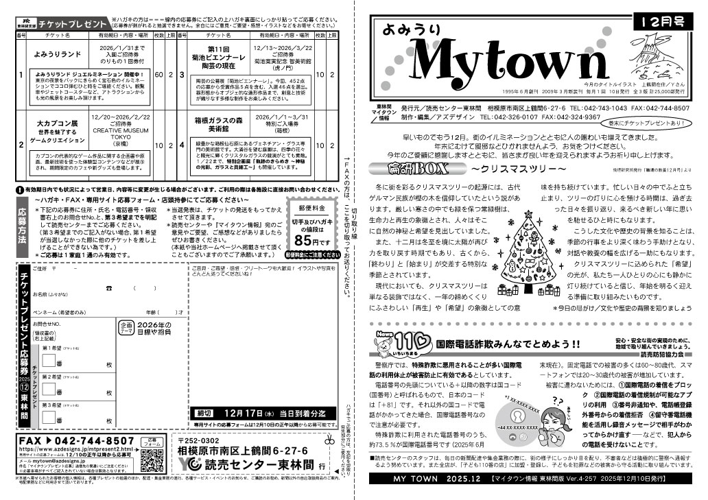東林間マイタウン情報2025 タウン情報紙「マイタウン情報」を毎月1回発行。 10日の朝刊折り込みにてお届けします。 読者プレゼントやお料理コーナー、皆様から寄せられたコメントなどを掲載しております。 読者プレゼント応募はコチラから 2025年12月10日号 外面 2025年12月10日号 中面 2025年11月10日号 外面 2025年11月10日号 中面 2025年10月10日号 外面 2025年10月10日号 中面 2025年9月10日号 外面 2025年9月10日号 中面 2025年8月10日号 外面 2025年8月10日号 中面 2025年7月10日号 外面 2025年7月10日号 中面 2025年6月10日号 外面 2025年6月10日号 中面 2025年5月10日号 外面 2025年5月10日号 中面 2025年4月10日号 外面 2025年4月10日号 中面 2025年3月10日号 外面 2025年3月10日号 中面 2025年2月10日号 外面 2025年2月10日号 中面 2025年1月10日号 外面 2025年1月10日号 中面
