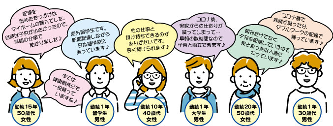 | 配達スタッフ | ①朝刊のみ ②朝夕刊 |